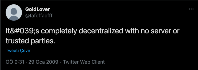 Исследователь придает большое значение этому твиту. Потому что Сатоши Накамото сказал: «Он полностью децентрализован, без сервера или доверенных сторон».