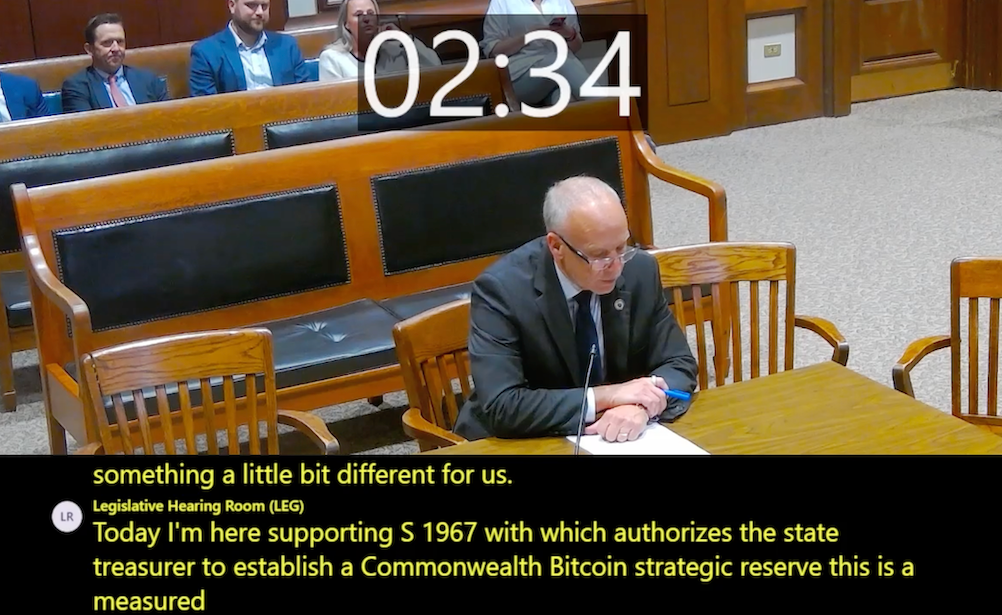 На слушаниях во вторник в Объединенном комитете по доходам законодательного собрания Массачусетса сенатор штата Питер Дюрант дал показания по поводу предложенного им законопроекта «Закон о стратегическом резерве биткоинов».