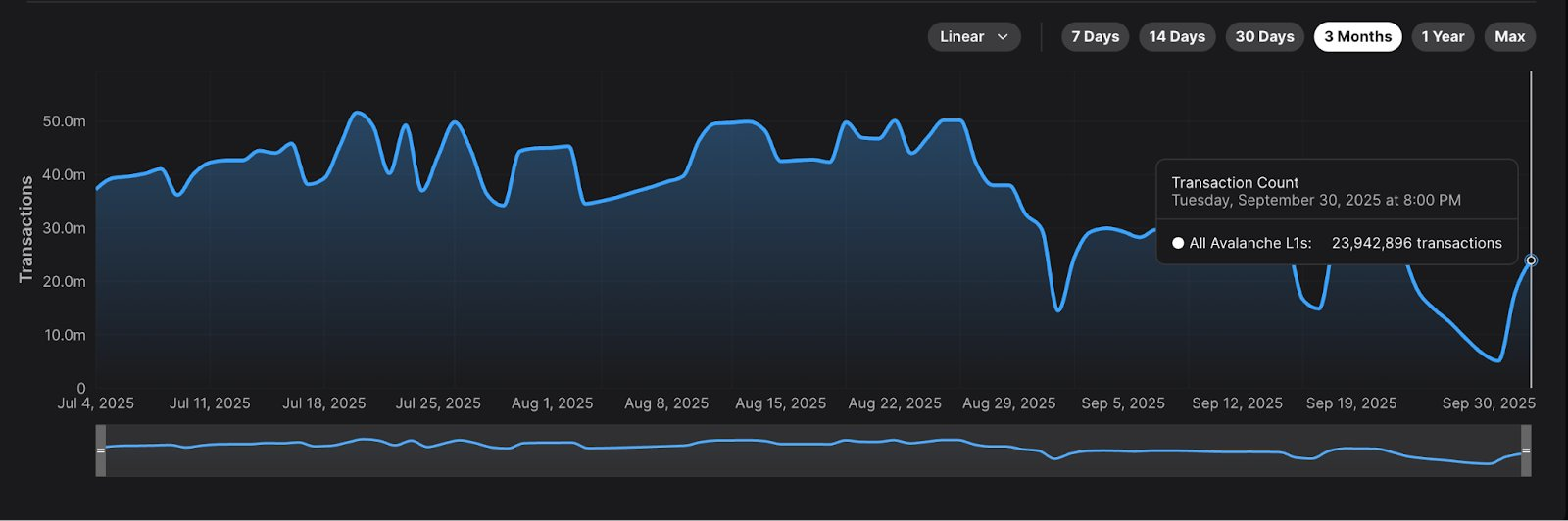 Данные по блокчейну Avalanche указывают на значительную активность пользователей: в среднем более 1 000 000 транзакций в день, а пиковое значение в 51 600 000 транзакций в день пришлось на последний квартал, согласно данным Nansen.