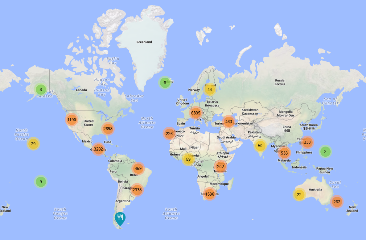 Рисунок 2. Торговцы, принимающие платежи в биткоинах. Источник: BTCmap.org.