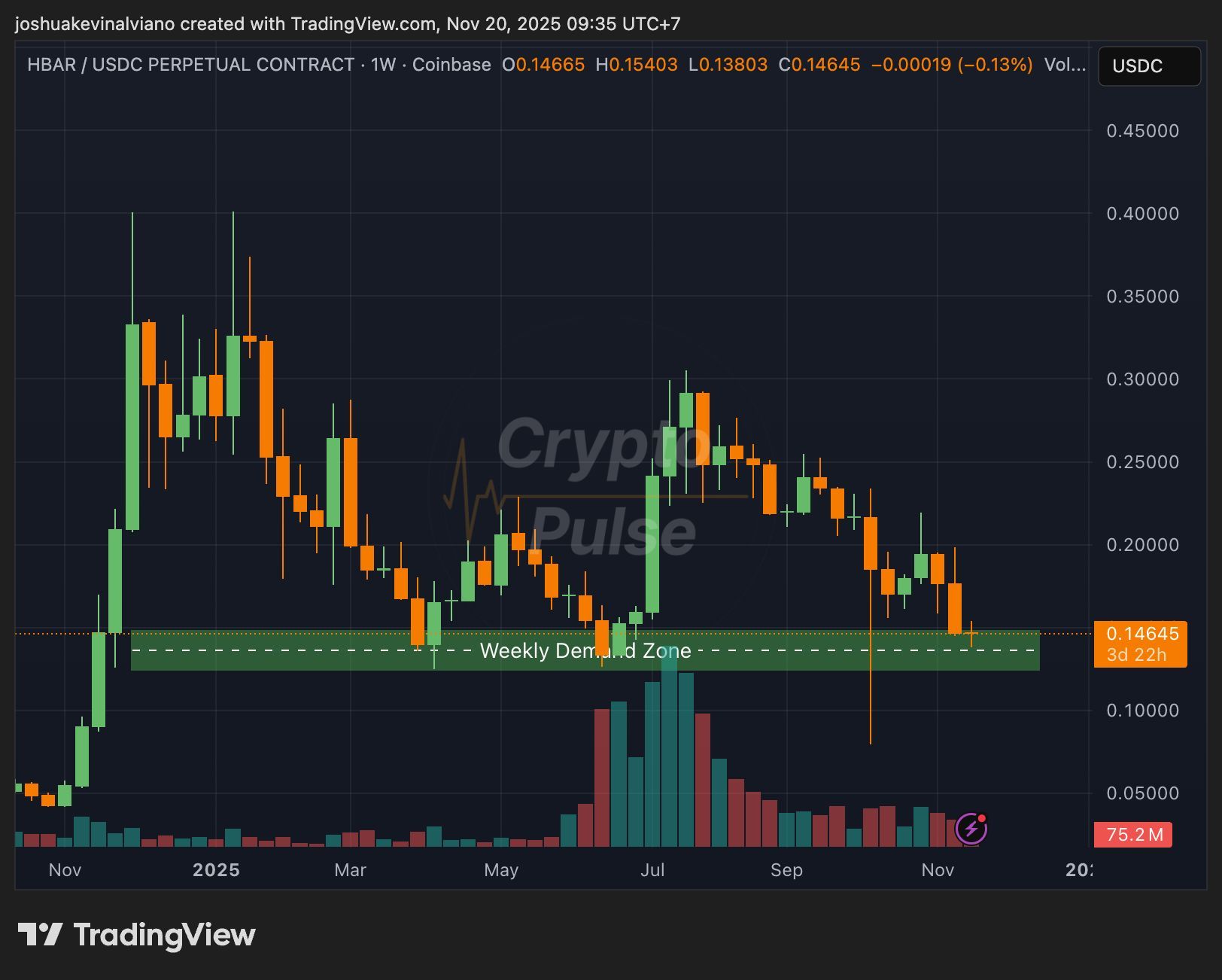 Это событие тем более примечательно, что оно происходит на фоне ценового давления на HBAR, которое в настоящее время затрагивает ключевую область спроса.
