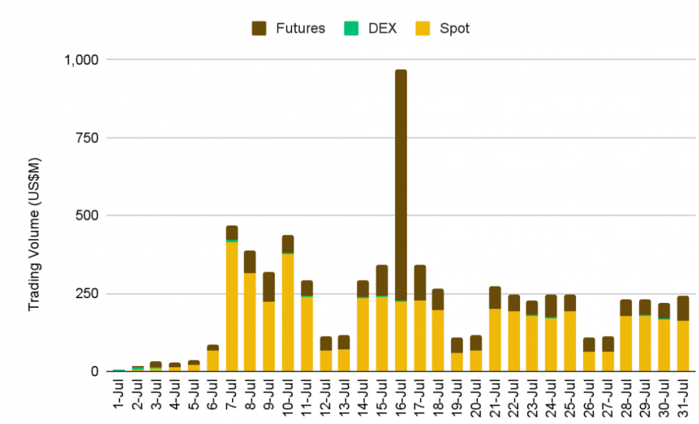 Растущий институциональный спрос на токенизированные предложения привел к росту токенизированных акций на 220% в июле. Эта динамика роста напоминает ранний бум DeFi, когда общая заблокированная стоимость выросла с $1 млрд до $100 млрд менее чем за два года с 2020 по 2021, согласно данным Binance Research.