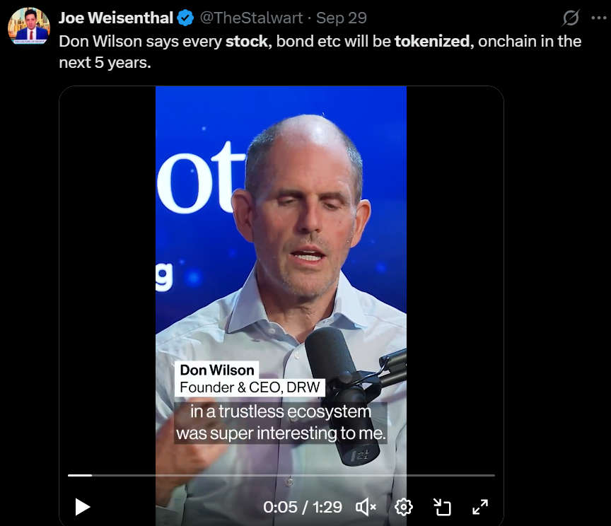 На сегодняшний день, согласно отраслевым данным, было токенизировано активов на сумму более 31 миллиарда долларов, но на долю токенизированных акций приходится лишь около 2% от общего объема. Тем не менее, их стоимость почти удвоилась за последние 100 дней, что свидетельствует об ускорении темпов внедрения.