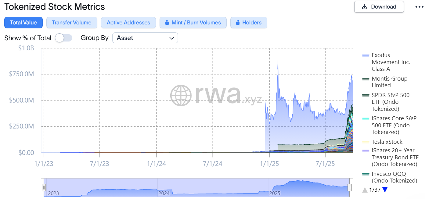Рисунок 3. Рынок токенизированных акций набирает обороты. Источник: RWA.xyz.