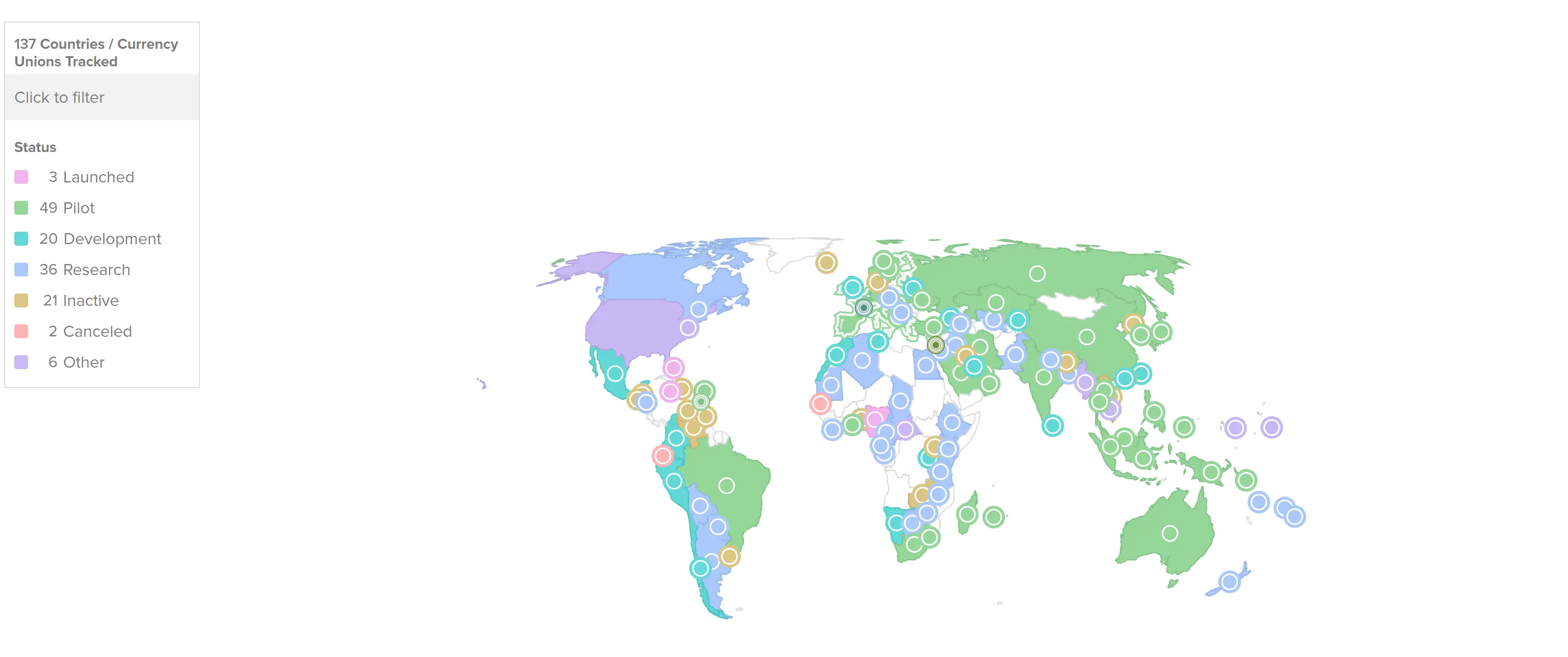 137 стран и валютных союзов, представляющих 98% мирового ВВП, изучают возможность выпуска цифровой валюты центрального банка. Источник: CBDC Tracker.