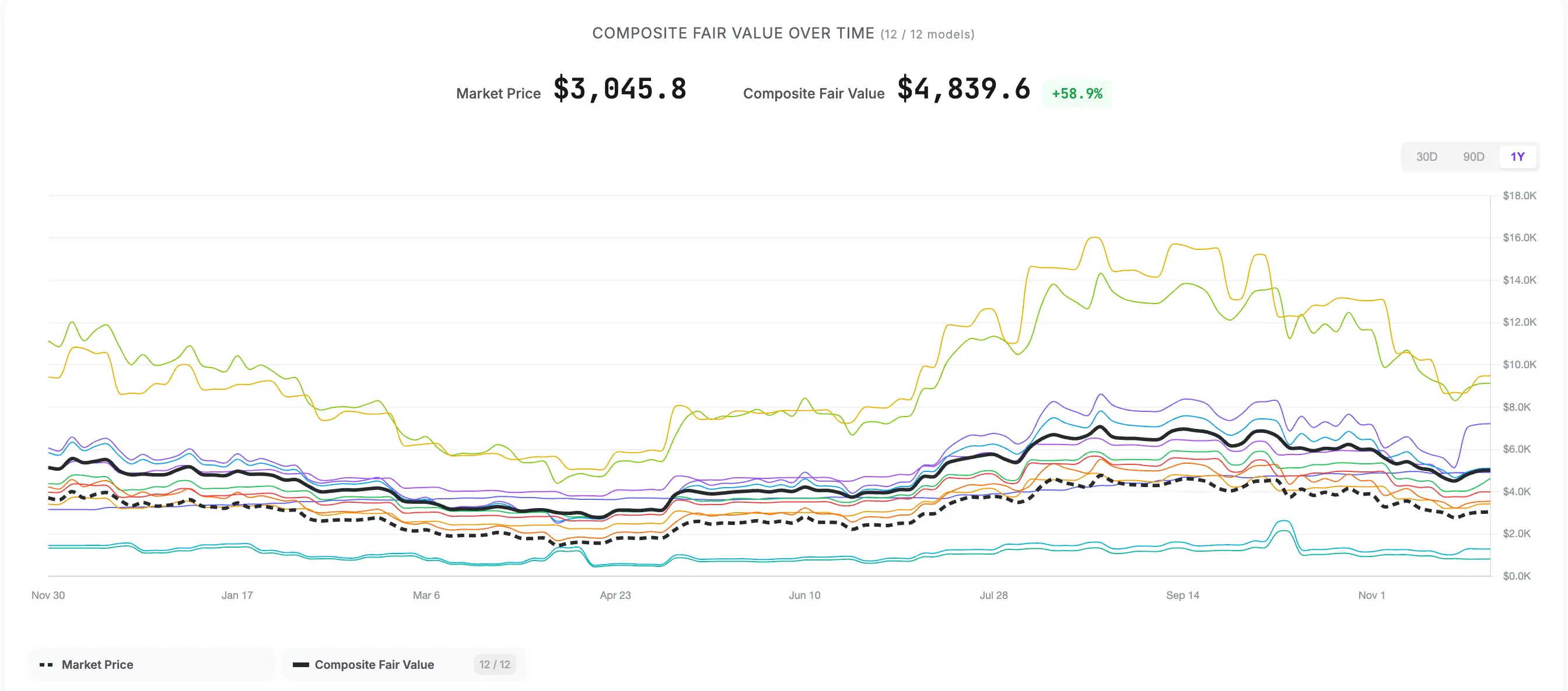 Совокупная «справедливая стоимость», рассчитанная на основе всех двенадцати моделей, составляет около $4 836. Это более чем на 58% превышает цену ETH на момент публикации.