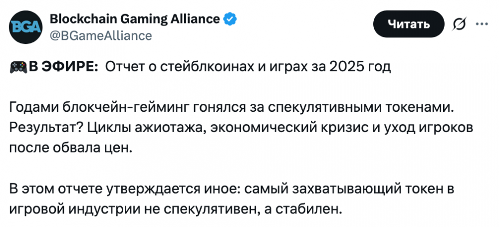 В отчете BGA переход на стейблкоины рассматривается как ответ на недостатки моделей «играй, чтобы заработать», основанных на спекулятивных токенах.