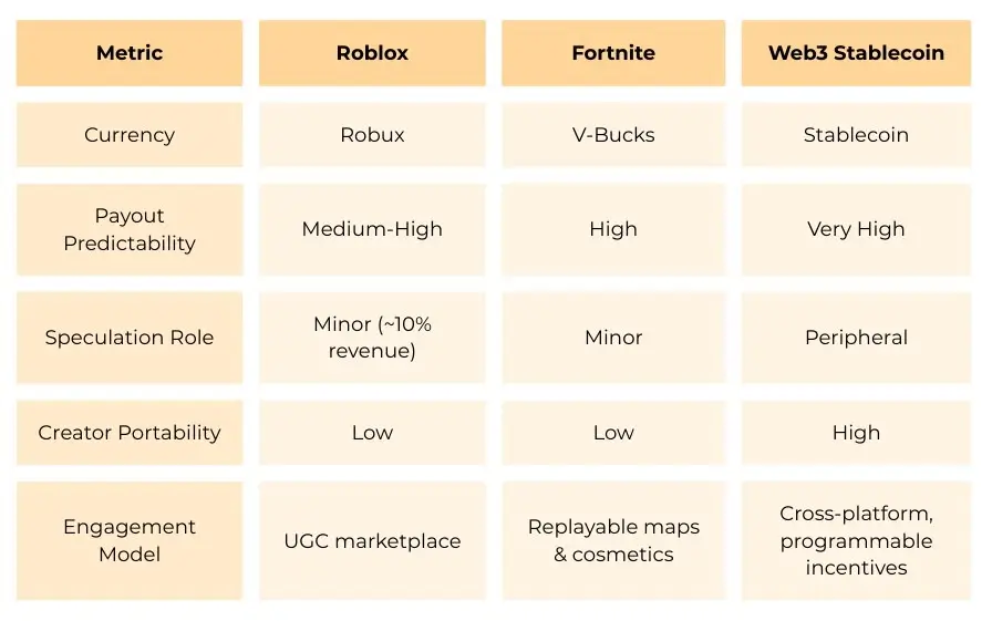 В отчете говорится, что стейблкоины, такие как USDT или USDC, обеспечивают экономическую стабильность, которой не хватает спекулятивным токенам. Устраняя волатильность внутриигровой экономики, они обеспечивают предсказуемость, более быстрые выплаты и бесперебойный обмен активами между платформами.
