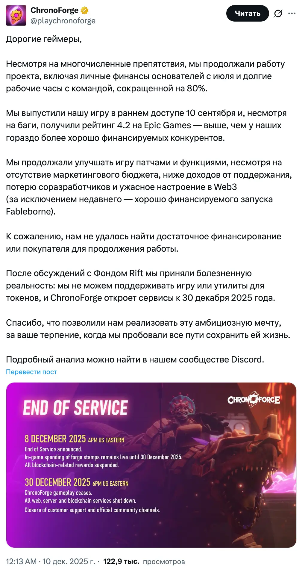 Студия ChronoForge закрывается на фоне кризиса в индустрии Web3‑игр