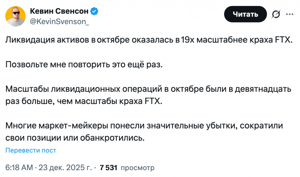 Такое доминирование усиливает волатильность. Риски проявились во время ликвидации на криптовалютном рынке 10 октября — крупнейшей в истории, когда за один день было уничтожено $19 млрд.