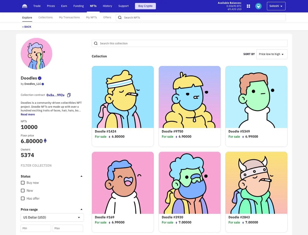 Скриншот торговой площадки Kraken NFT.