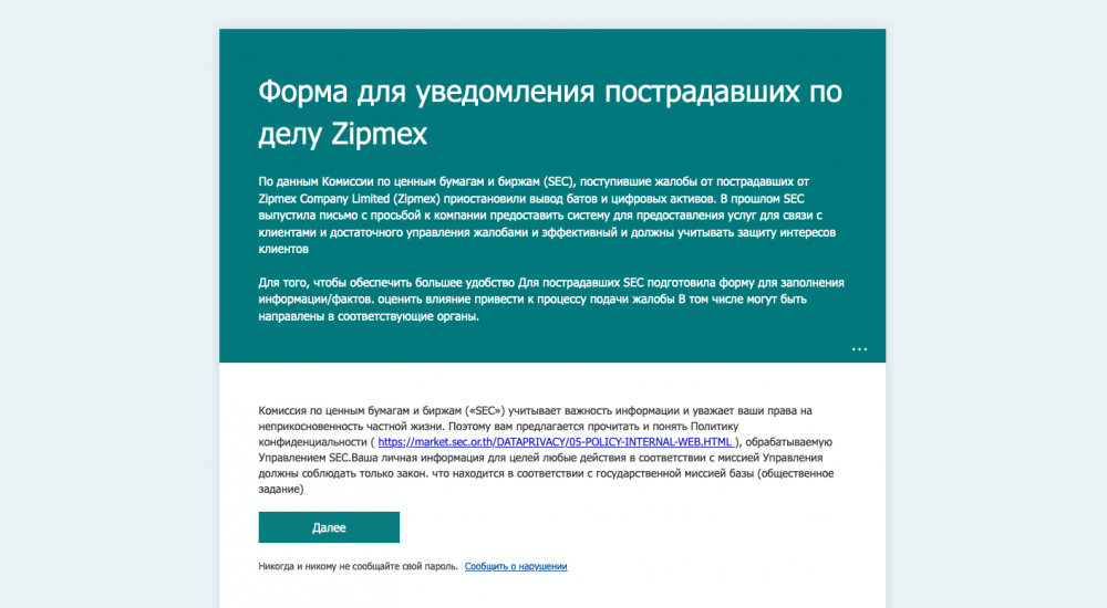 Регулятор официально объявил 25 июля, что клиенты Zipmex могут отправлять информацию через онлайн-форму на официальном сайте SEC Таиланда.