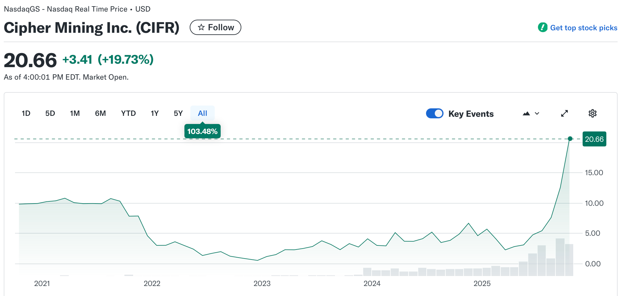 Котировки акций Cipher Mining. Источник: Yahoo Finance