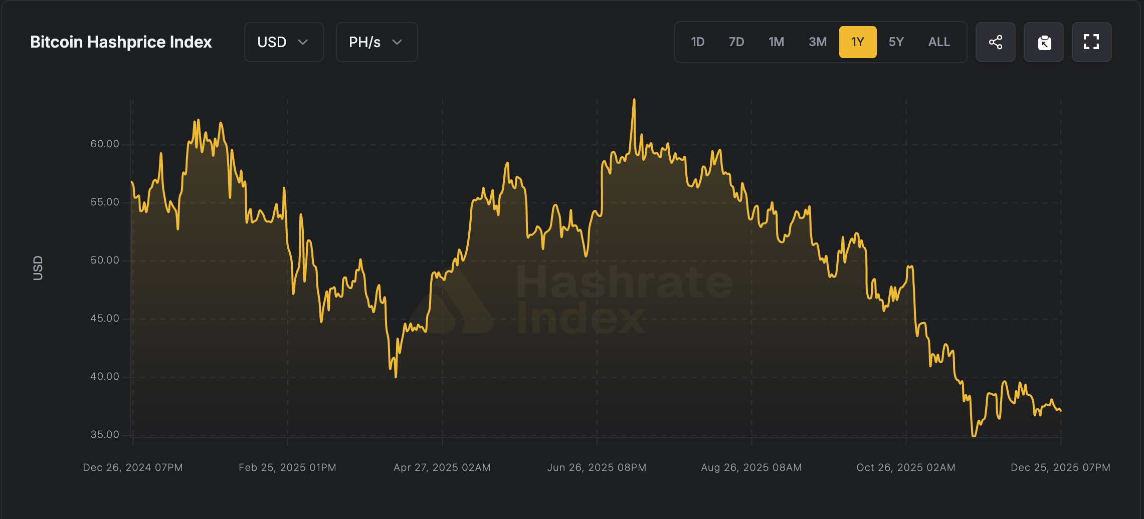 Скидки появились на фоне одного из самых сложных периодов для рентабельности майнинга: показатель хэшпрайс (ожидаемый доход за единицу вычислительной мощности, затраченной на добычу блока) упал до многолетнего минимума — почти $35 за терахеш в секунду в день (TH/s/day).