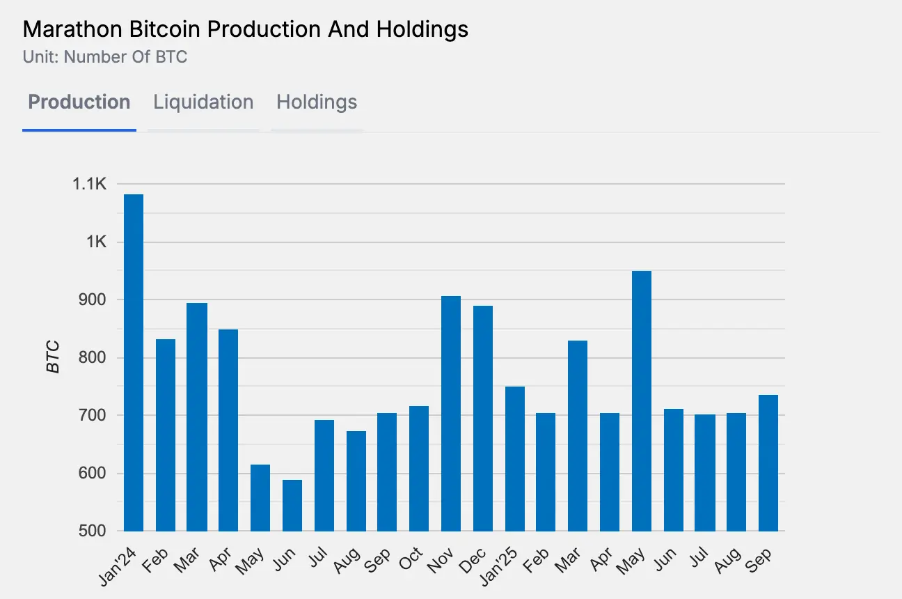 Согласно сентябрьскому отчету Marathon Digital, компания ликвидировала 49,32% из 736 добытых биткоинов. Это ознаменовало заметное изменение в стратегии управления казначейством, поскольку майнинговый сектор адаптируется к недавнему снижению доходности из-за роста сложности сети.