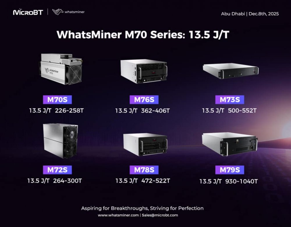 В понедельник компания MicroBT презентовала новое поколение устройств WhatsMiner — серию M70. Презентация прошла на конференции Bitcoin MENA 2025 в Абу‑Даби на фоне самого слабого за последние годы экономического положения в сфере майнинга биткоина.