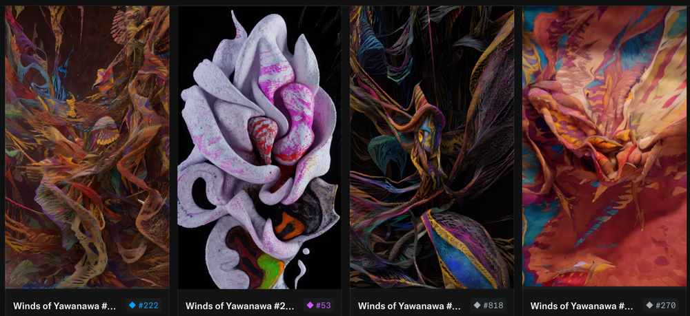 NFT-объекты Winds of Yawanawa размещены на торговой площадке OpenSea. Источник: OpenSea.