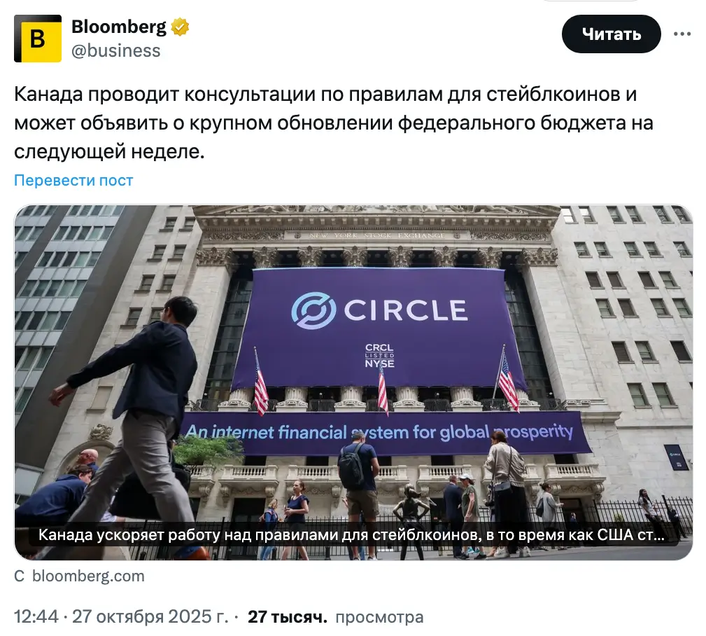 Правительство Канады, как сообщается, готовит новые правила для стейблкоинов. Обновление регулирования может быть представлено в федеральном бюджете на следующей неделе, что сигнализирует о возможном переходе других стран на путь Соединенных Штатов после знакового принятия закона GENIUS Act.