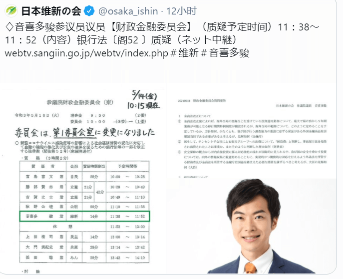 «Член сената Отоки Дацун должен приехать с 10:38 до 10:52. Во время встречи ему будет задан вопрос о том, как японское правительство относится к NFT», - говорится в сообщении.