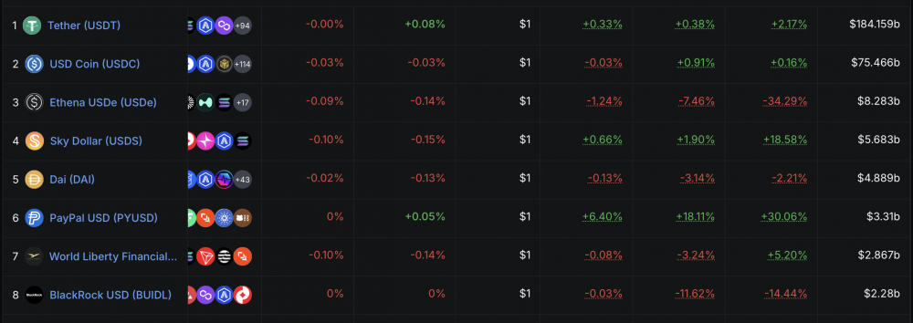Лучшие стейблкоины по рыночной капитализации. Источник: DefiLlama.com.