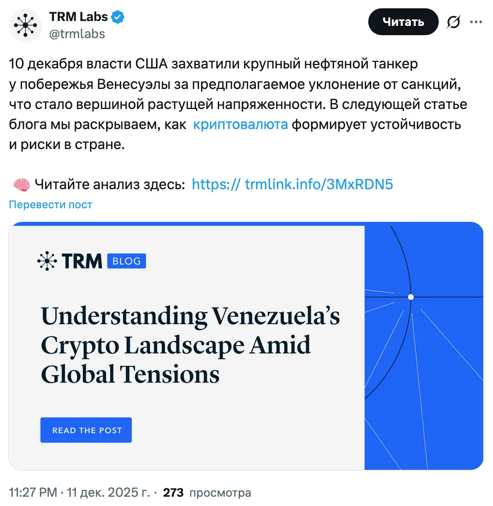 На фоне усиления региональной и геополитической напряженности, в том числе из‑за обострения отношений между США и Венесуэлой, продолжается макроэкономическая нестабильность и обесценивание боливара. В отчете TRM Labs за четверг прогнозируется: спрос на стейблкоины как средство сохранения стоимости и инструмент расчетов будет увеличиваться.