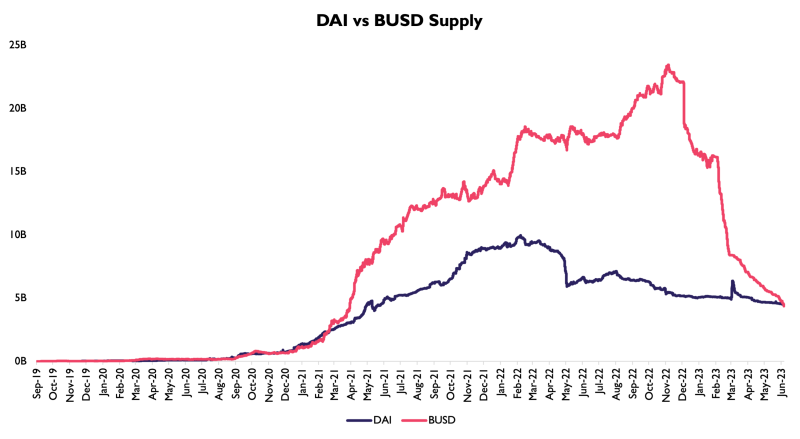 Капитализация BUSD ниже, чем у DAI после погашений на $95 млн