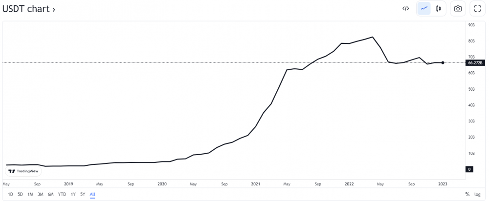 Рыночная капитализация USDT с мая 2018 г. по январь 2022 г. Источник: TradingView