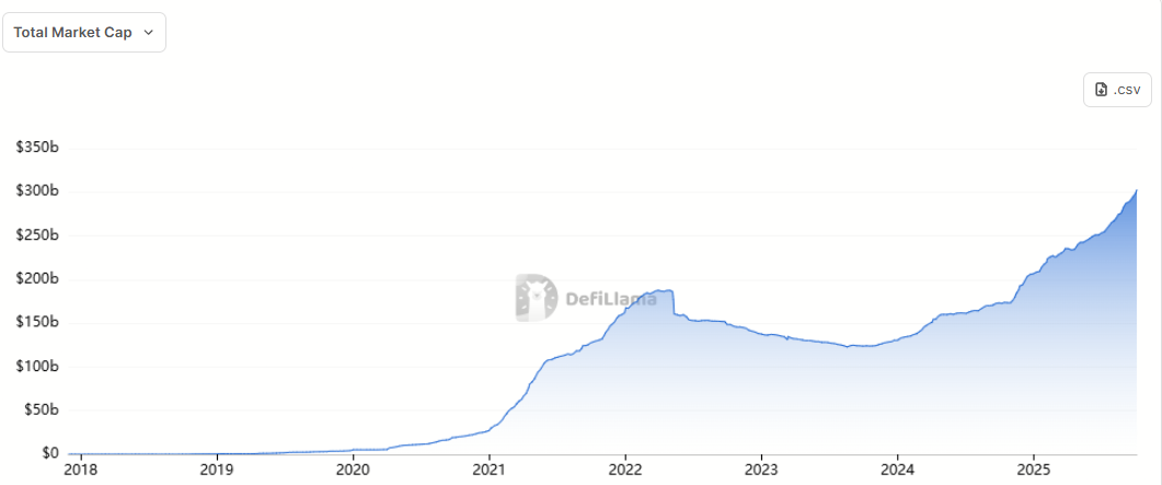 По словам Рикардо Сантоса, технического директора финтех-платежной компании Mansa Finance, работающей на стейблкоинах, рубеж в $300 млрд может сигнализировать о «восстановлении цифровых активов». Этот процесс происходит на фоне растущей интеграции стейблкоинов в мировые финансы.
