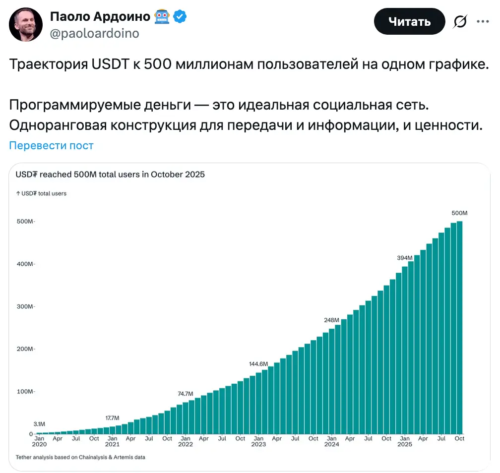 «Вероятно, это самое большое достижение в области финансовой доступности в истории», — написал генеральный директор Tether Паоло Ардоино в публикации на X.