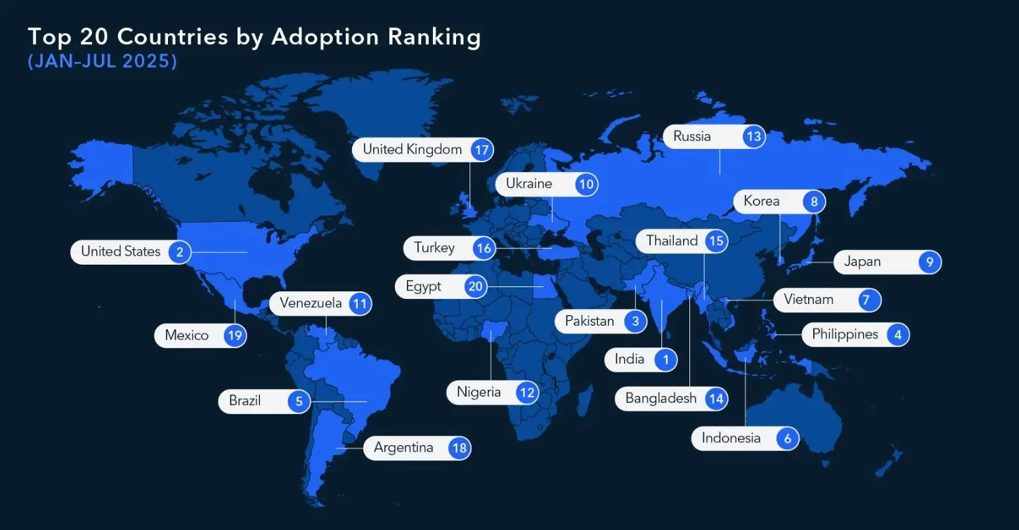 По данным TRM Labs, внедрение криптовалют также выросло, несмотря на ужесточение контроля над биржами и капиталом в некоторых странах.