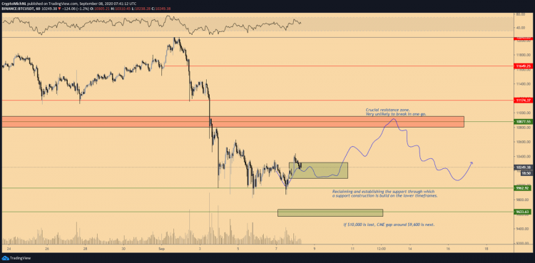 В настоящее время аналитики расходятся во мнениях относительно того, какой будет следующий тренд BTC, поскольку продолжение защиты в размере 10 000 долларов будет оптимистичным, тогда как устойчивое падение ниже этого уровня будет мрачным знаком для его среднесрочной перспективы.