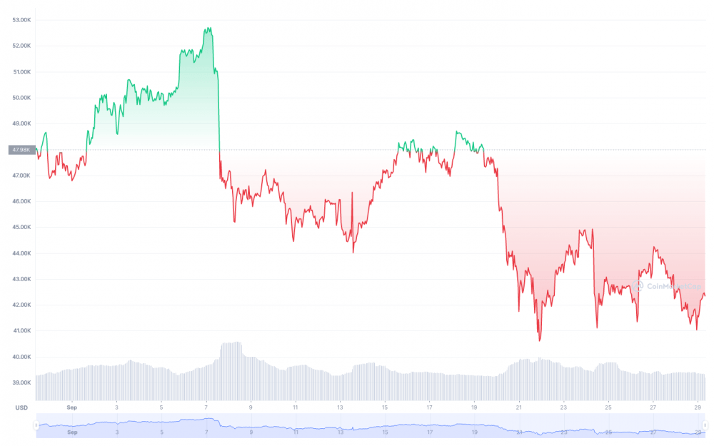 По данным CoinMarketCap, биткойн торгуется на уровне 42 328 долларов на момент написания и упал почти на 15% за последний месяц.