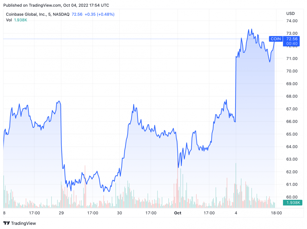Криптовалютная биржа Coinbase также получила столь необходимый скачок цены своих акций, поднявшись чуть более чем на 10% до 72,58 доллара. На прошлой неделе акции COIN на бирже резко упали из-за предупреждения Wells Fargo о прибыльности.