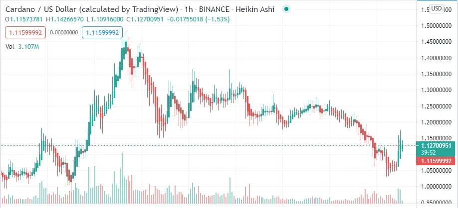 Цена ADA в предыдущий рабочий день испытала крутое свободное падение, однако, за последние пару часов цена криптоактива резко выросла почти на 13%.