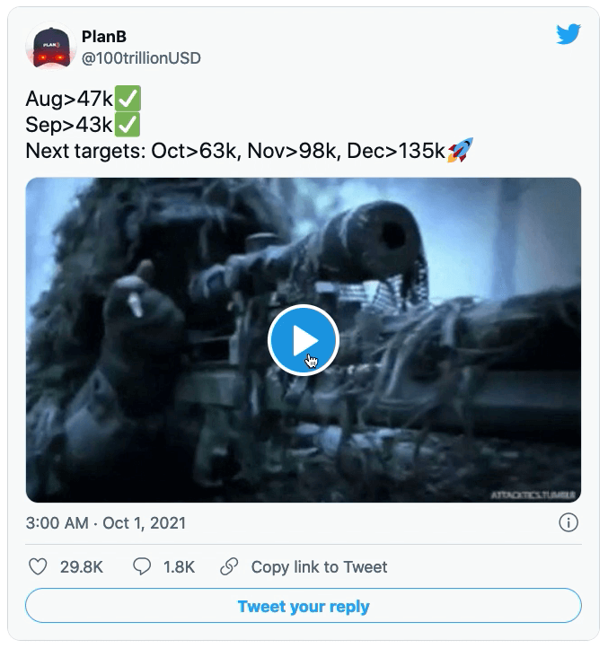 Несмотря на то, что Биткойн все еще не преодолевал сопротивление на уровне 45000 долларов и выше, он не разочаровал своей производительностью в конце месяца, что почти в точности совпадает с прогнозами PlanB создателя модели соотношения запасов к потоку второй месяц подряд.