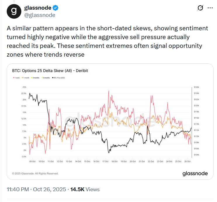 В воскресном посте в X Glassnode предположил, что намечается разворот тренда, поскольку давление со стороны продавцов и негативные настроения, похоже, уже достигли своего пика.
