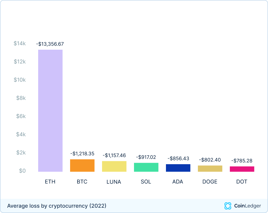 Продажи эфира составили большую часть реализованных убытков в 2022 году. Источник: CoinLedger.