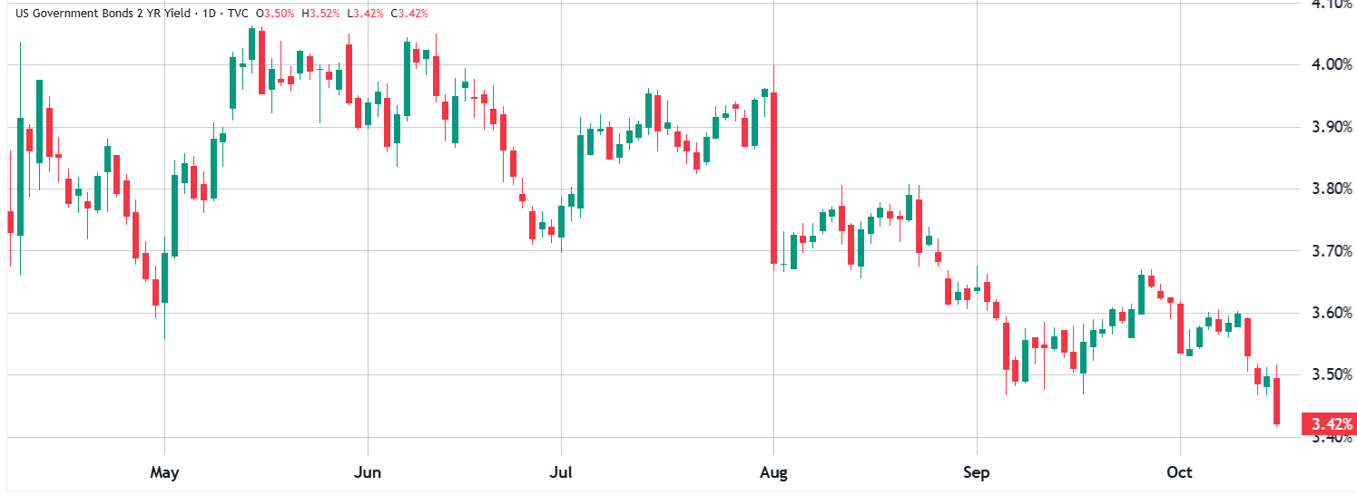 Рисунок 3. Доходность 2-летних казначейских облигаций США. Источник: TradingView.